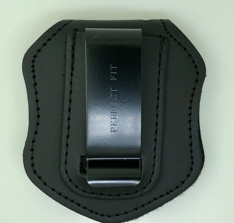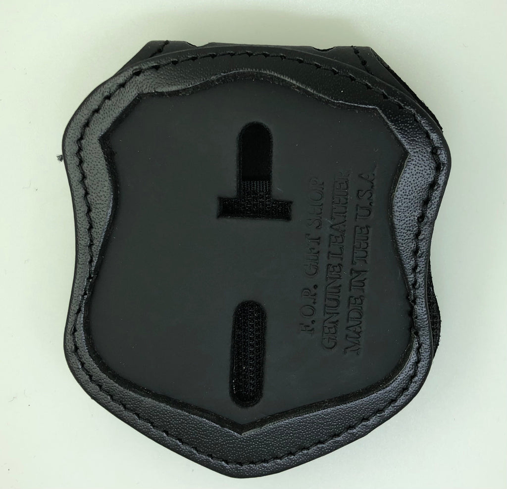 This custom cut-out clip-on MPDC badge holder feature top grade leather, heavy duty spring clips and velcro closure.
