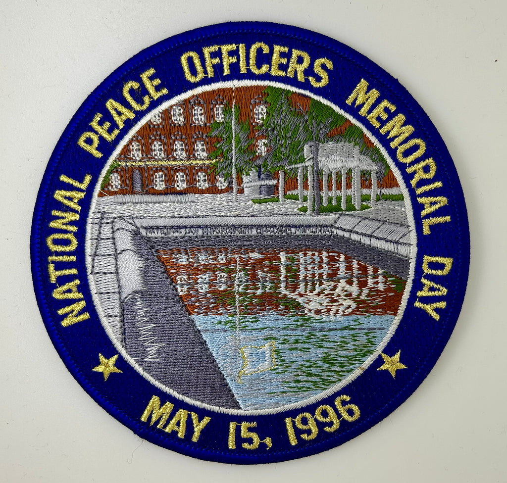 1996 and 2001 Police Week PATCHES. 100% Embroidered. 5" diameter. 2001 features 7 colors. 1996 features 9 colors.
