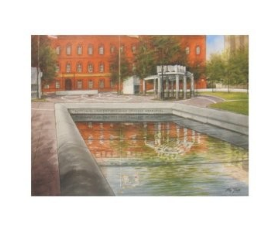 Ken Frye limited edition watercolor print captures the serenity of the Memorial in reflected images.